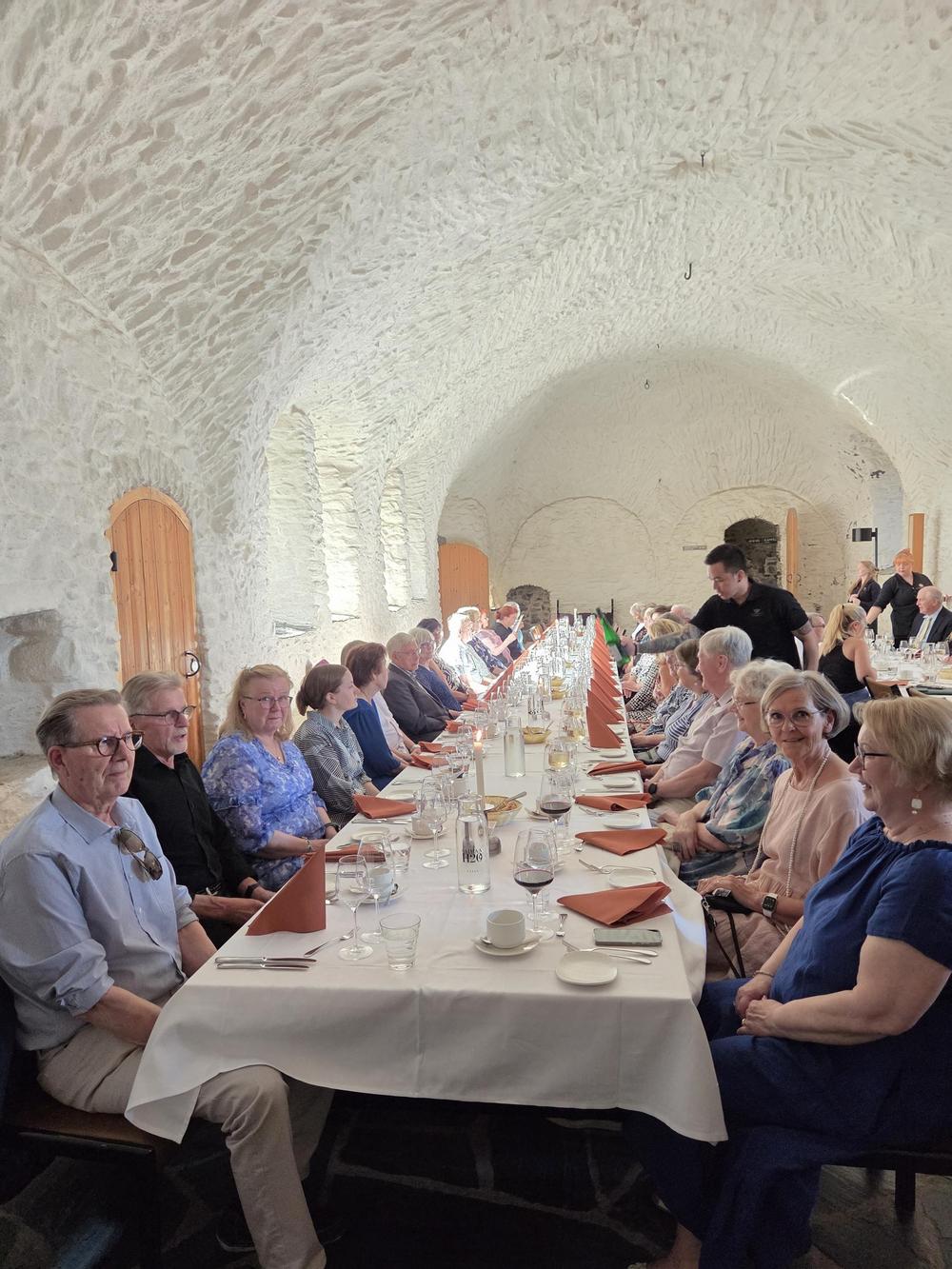Klo 15 jälkeen lähdimme kohti Savonlinnaa. Oopperaillallinen tarjoiltiin 550-vuotiaan Olavinlinnan historiallisessa Kuninkaan salissa.