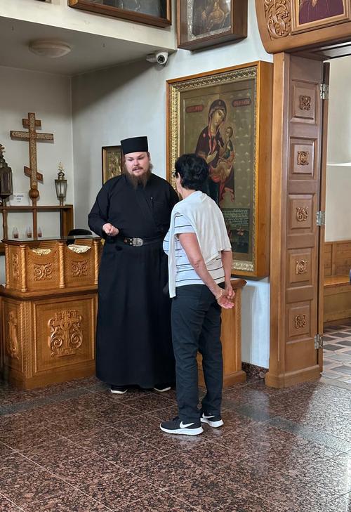 Seuraava pysähdys oli Valamon luostarissa, jossa nautittiin maittava lounas ja osallistuttiin opastetulle kierrokselle kirkkoihin. Kierroksen aikana saatiin kattava katsaus luostarin historiaan. Oppaana toimi viitankantaja Stefanus.