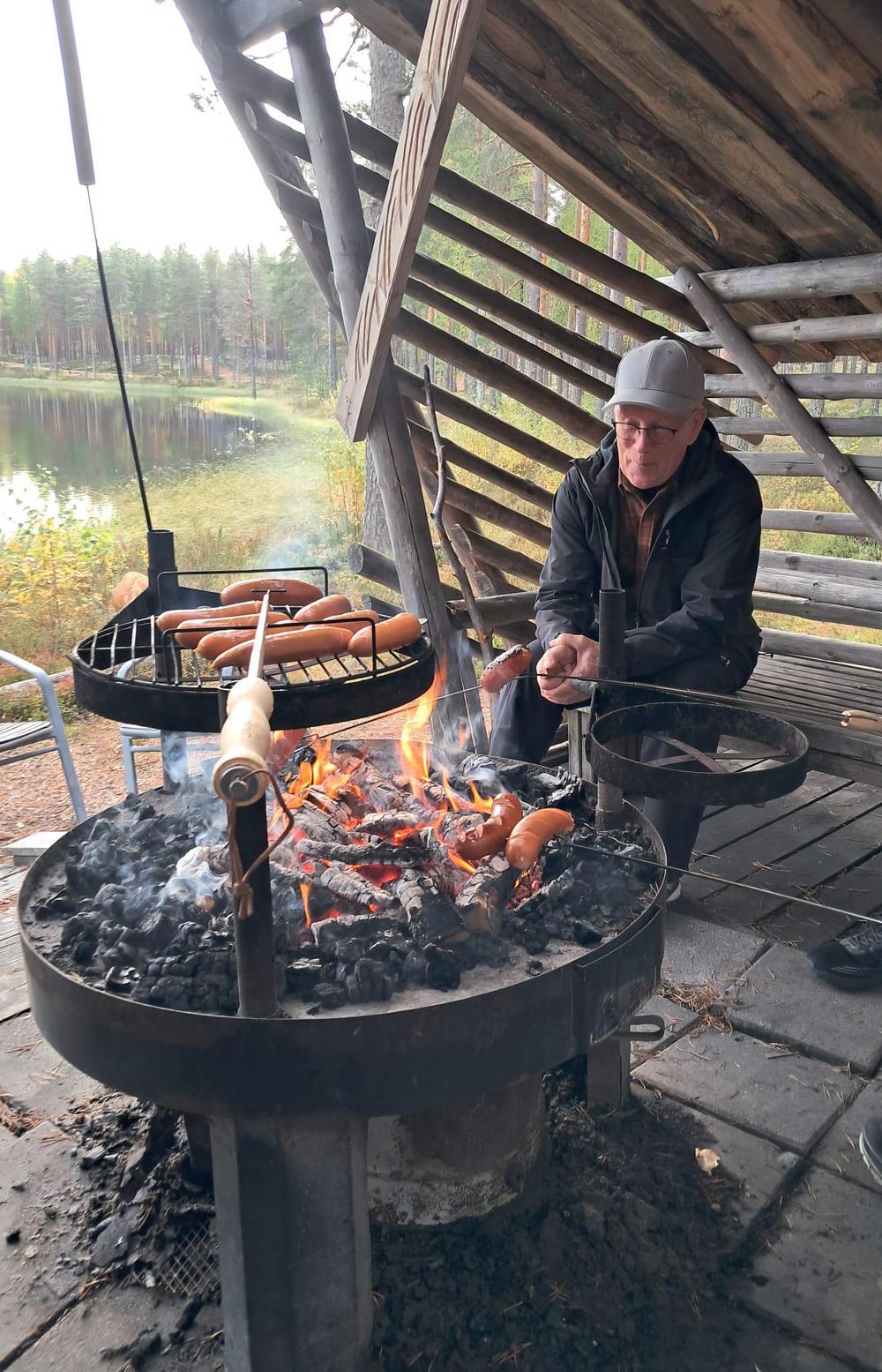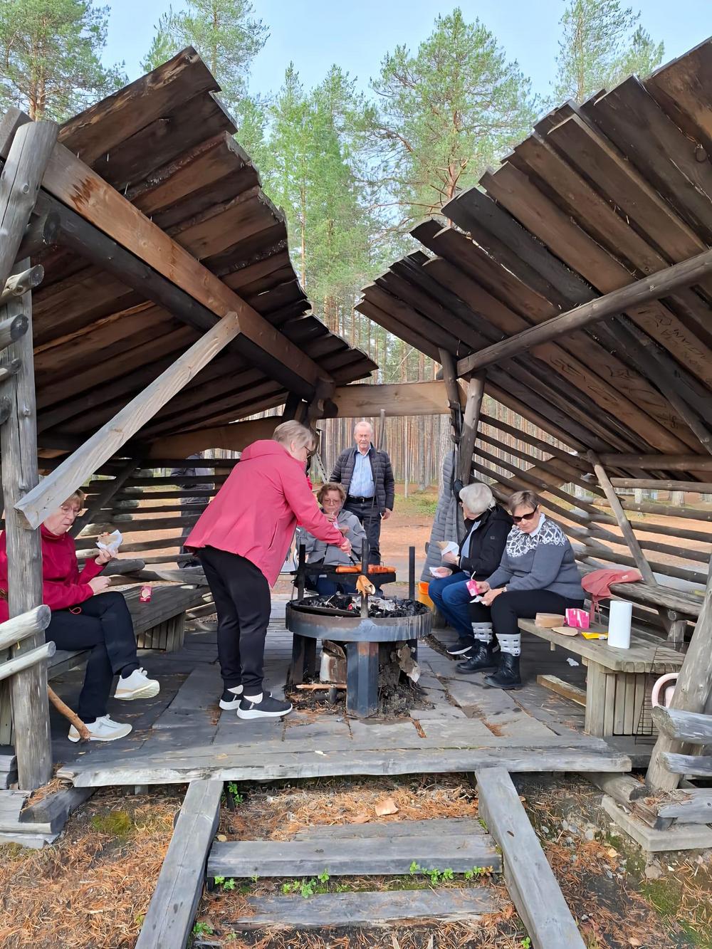 Iloinen 15 hengen (6 Nestoria+9 Esteriä) ryhmämme starttasi aamupäivällä omilla autoillaan kohti Rokuan kylpylää. Huoneet saatuamme kokoonnuimme läheisen Ahveroisen lammen rannalla olevalle laavulle, jonne osa Nestoreista olikin jo ehtinyt sytyttää tulen makkaran paistoa varten. Aino ja Jorma olivat varanneet makkarat ja juomat, jotka tulivat kyllä oikeaan aikaan ja osoitteeseen varhaisen aamiaisen jälkeen.