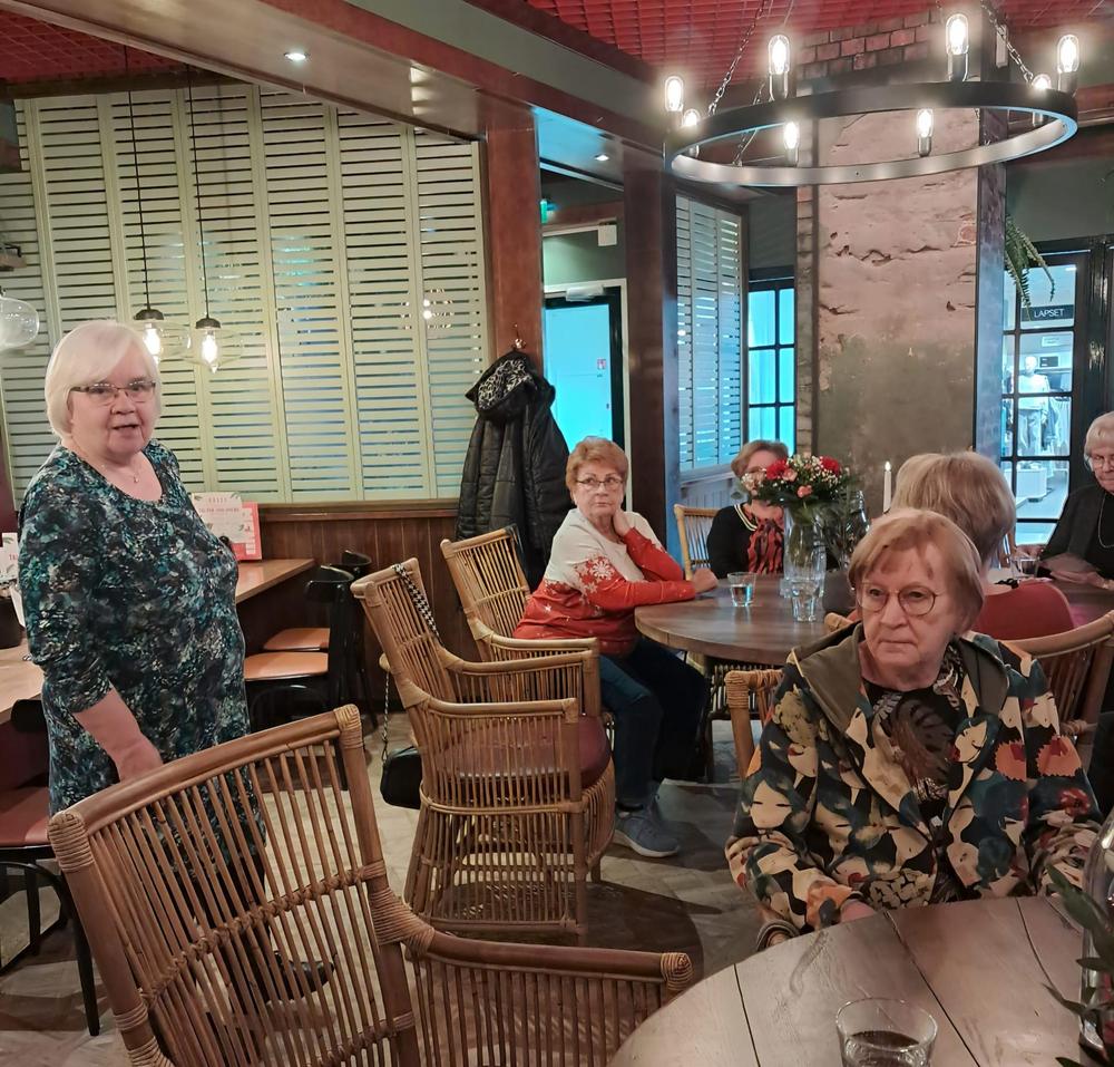 Kaksitoista Esteriä kokoontui lounaalle, jossa oli myös tarkoitus valita Estereille vetäjä seuraavalle vuodelle, eli 2026. Ritva saatiin kukkasin ja kiitoksin suostuteltua vielä jatkamaan ja lupauksin, että porukalla mietitään ja etsitään kerholle kiinnostavia tutustumiskohteita. Kuvat 3. ja 4. Ruokaa odotellaan.