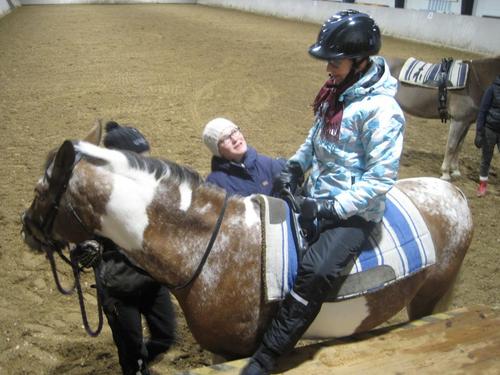 Eipä siinä muuta kuin kypärä päähän ja ratsaille, näin jokainen pääsi vuorollaan kiertämään maneesin ympäri taluttajan ollessa ohjissa. Monelle tämä laji oli uutta, mutta kaikki uskaltautuivat kokeilemaan, jopa minä itsekin.