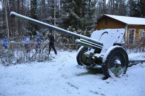 Miesten retki suuntautui Kestilään, aivan varavankilan naapuriin. Siellä oli vastassa talo, jonka pihalla oli tykki, ilmeisestikin ilmatorjuntaa varten tarkoitettu. Alkuun kuultiin kodassa makkaran paiston ohella paikan omistajan Seppo Karppisen tarinointia harrastuksestaan, eli hän on kerännyt viime sotien taistelupaikoilta maalöytöjä Kuhmon tienoilta ja siitä itään rajan taakse. On löytynyt ruostuneita aseita ja paljon muuta sotamateriaalia. Nämä ovat hänen halleissaan esillä.