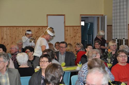 Vanhan hyvän ajan tarjoilijoiden asuihin pukeutuneet emäntämme antoivat nostalgisen silauksen juhlaamme. Vieraat saivat pullakahvit nautittavakseen pöytiin tarjoiltuna.