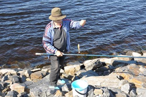 Kivikkoiset aallonmurtajat eivät parhaita paikkoja ole onkimiseen, mutta kun siellä vanhoilla jaloilla yritti astella, kyllä se onnistui.