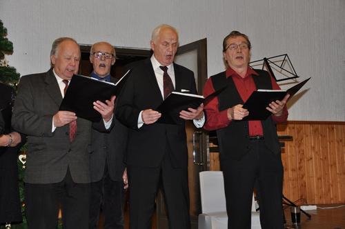 Vuokkojen ja Veikkojen paikalla olleet jäsenet lauloivat yhdessä vanhan tutun joululaulun Heinillä härkien kaukalon.