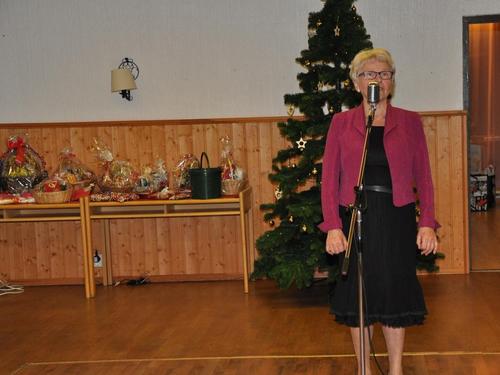 Jouluisen aterian jälkeen pääsimme nauttimaan illan ohjelmasta. Ensimmäisenä esiintymisvuorossa oli Marja-leena Huru. Hän esitti runon mummon muuttumisleikki. Mummo kävi läpi runon vaiheissa erilaisia teemoja. Lapsenlapsi toivoi lopuksi, että mummo palaisi siihen rakkaaseen, tuttuun ja turvalliseen oman mummon hahmoon, joka on maailman paras. Pienen toive toteutui.
