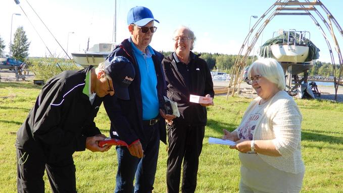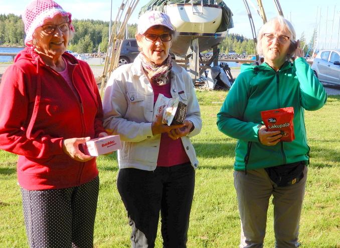 Naisten sarjan voittaja oli kuvassa keskellä seisova Vuokko, toinen ja kolmas sija jaettiin Anna-Liisan ja Ailan kesken. Hyvä rouvat!