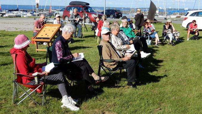 Juhlakentän halkovan ojan pientareilla oli mukava paistatella päivää ja jutustella toimintatauon vuoksi käsittelemättä jääneistä asioista ja tapahtumista. Kaikkineen mukava ilta!
