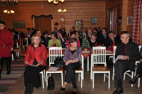 Alkutalven harmaana päivänä 23.11.2012 saimme päiväämme valoa ja virkeyttä yhteisesti vietetystä pikkujoulu-juhlasta. Tämänvuotinen juhlapaikkamme oli Alatemmeksellä sijaitseva Helmen Pirtti, jonka isäntäväki Raimo Pietilä ja Anne Kiljo-Pietilä henkilökuntineen olivat valmistautuneet huolella juhlamme läpivientiin. Pöydässä oli "kystä kyllä."