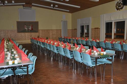 Kempeleen Nuorisoseuran juhlasali oli katettu jouluisen kauniiksi puurojuhlaamme varten. Taitavat naisemme näyttivät parasta taitoaan, miesten saliin asettelemien pöytien koristelussa.