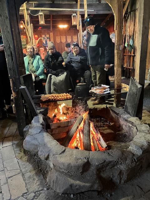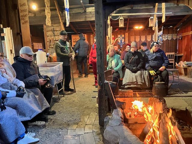 Sitten linnan sisäosassa nautittiin nokipannu kahvit munkin kera.