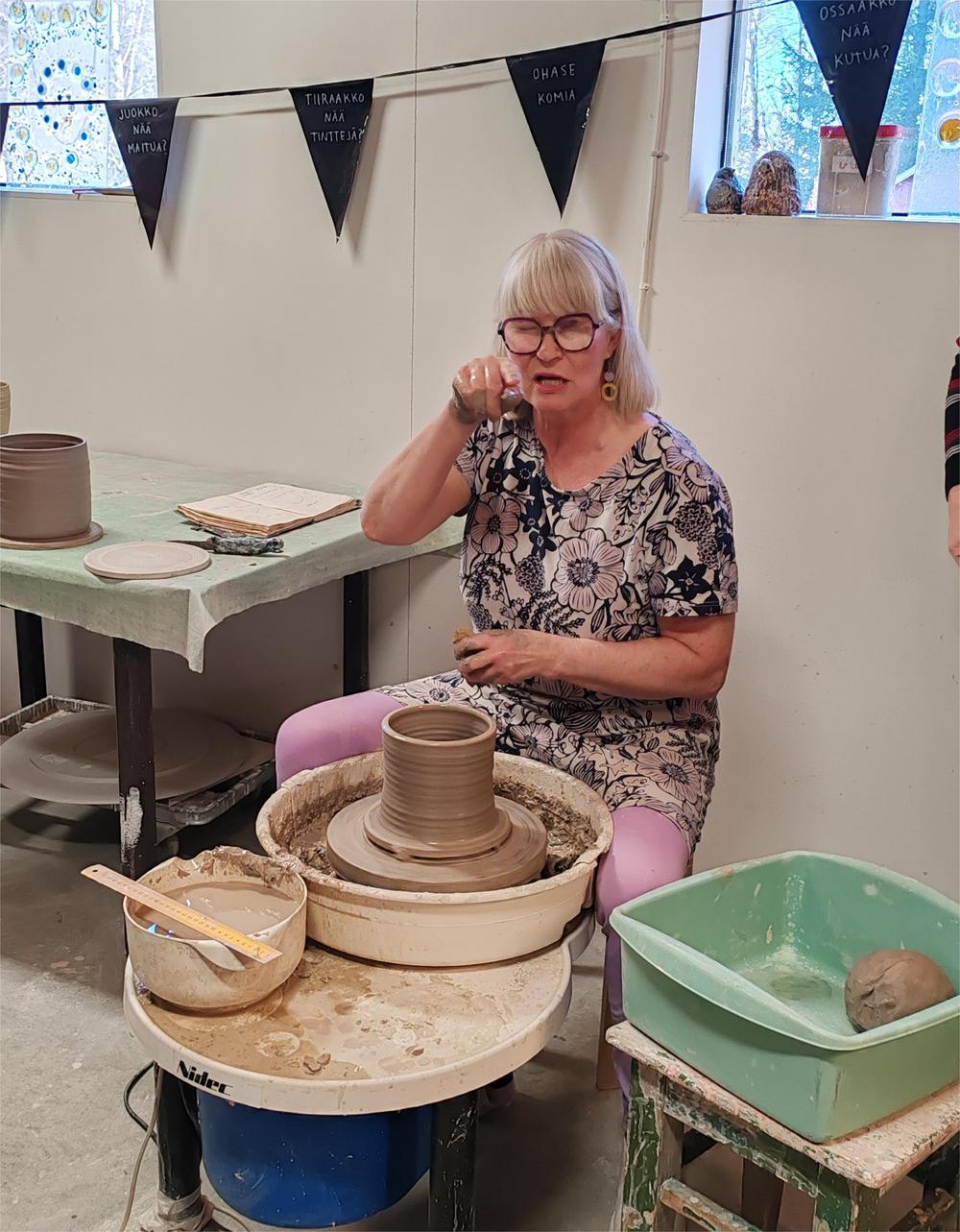 Sitten saimme nähdä Tiina-Marin työnäytöksen saven dreijaamisesta.