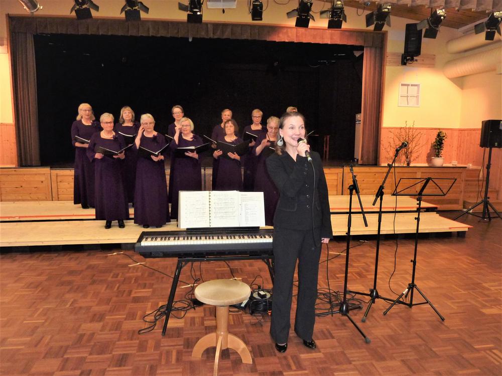 Suvi Partanen johti ja säesti pianolla kuoroja. Hän toimi ansiokkaasti myös tilaisuuden juontajana.